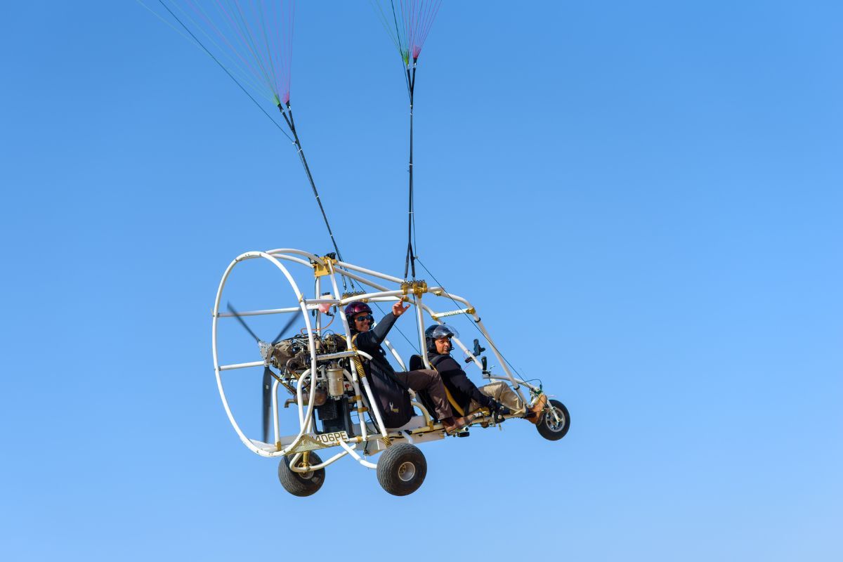 Unlike most paragliding tours, this one does not require you to jump off of a mountain or cliff. Instead, it's a motorized form of flying that allows your guide to take control and fly the paramotor without relying on the wind.