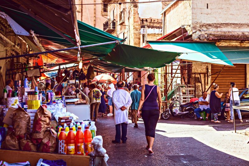 One of the highlights of a food tour in Palermo is a visit to Mercato di Ballarò, a bustling local market. Here, you'll be immersed in the vibrant atmosphere, surrounded by colorful stalls that sell fresh fruit and vegetables, meat, fish, aromatic spices and more. It’s also a great place to buy clothing and souvenirs.