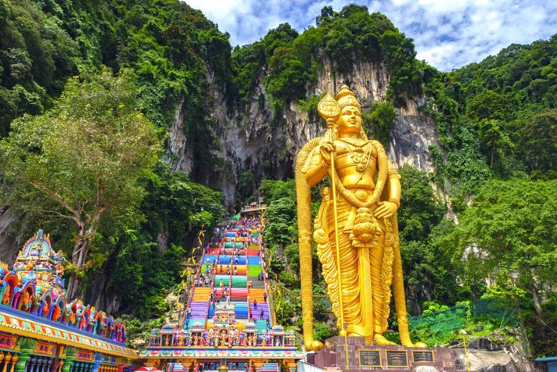 Located north of Kuala Lumpur, Batu Cave is a Malaysian treasure trove guarded by an immense statue of the Hindu deity Lord Murugan. A Tamil Hindu leader built a temple inside the caves in 1891, and since then this place has attracted thousands of pilgrims every year.