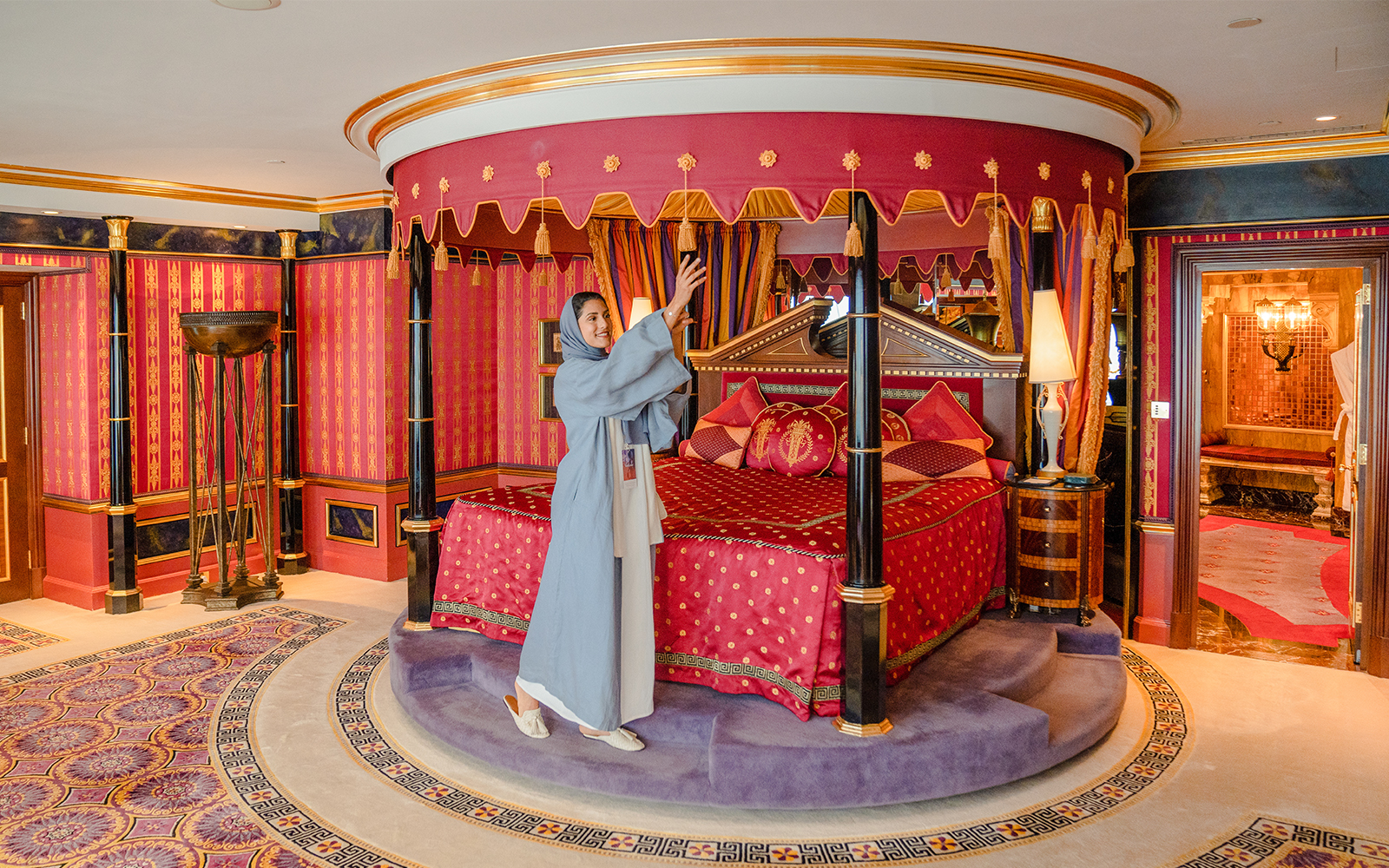 • Take a scenic lift ride to the Royal Suite on the 25th floor, where rotating canopy beds, gold showers, and private cinema await your exclusive access.