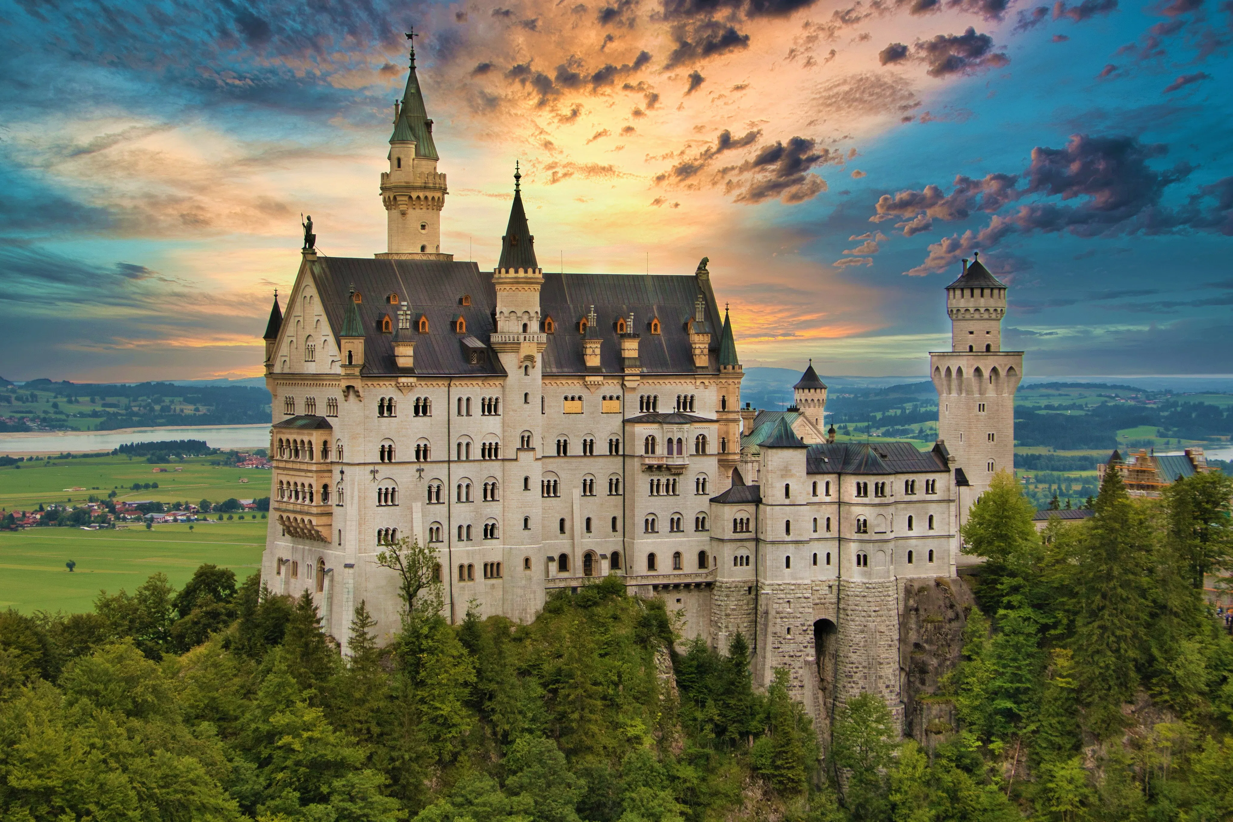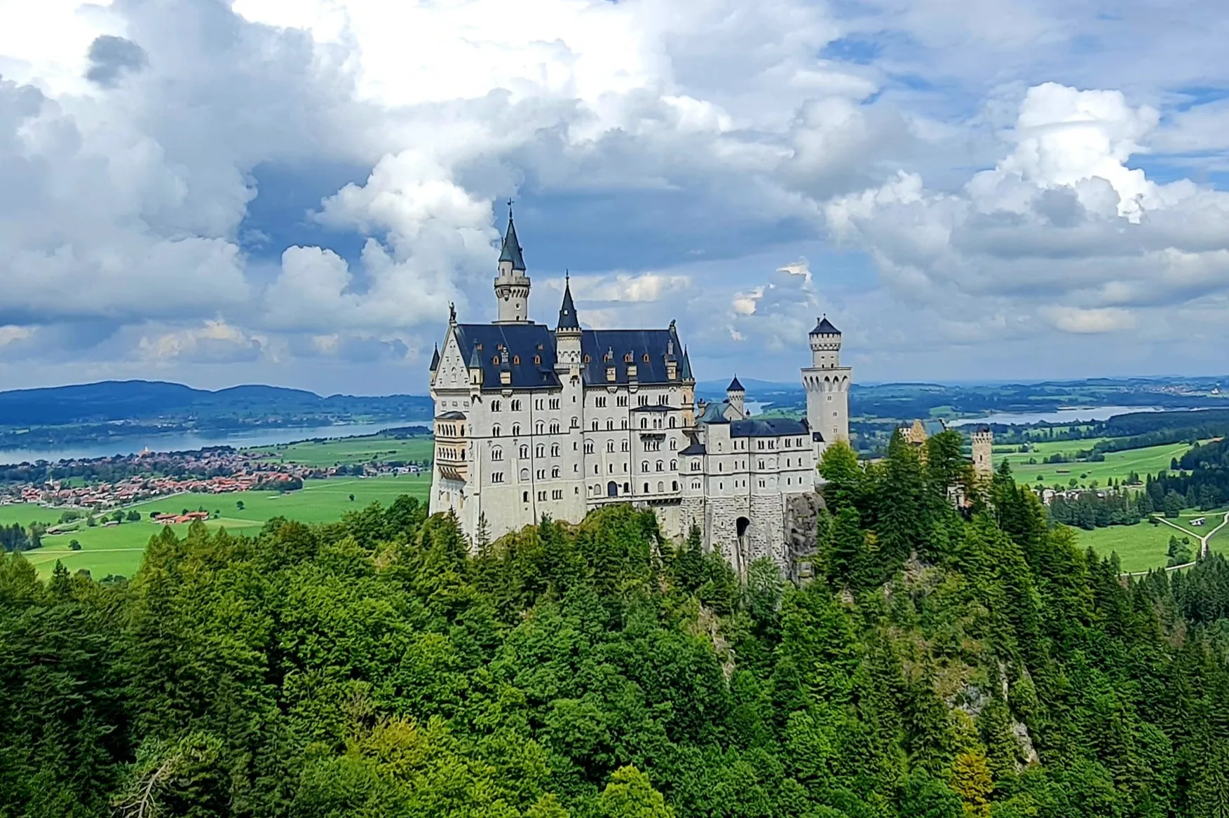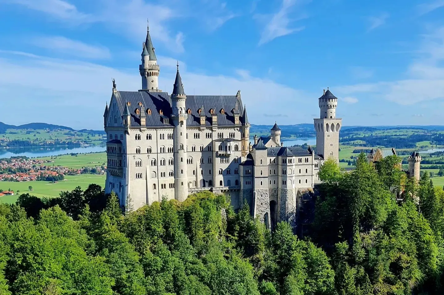 Set high upon a Bavarian hill and surrounded by an ocean of conifers, Neuschwanstein Castle, with its spires and towers, is the stuff of daydreams.