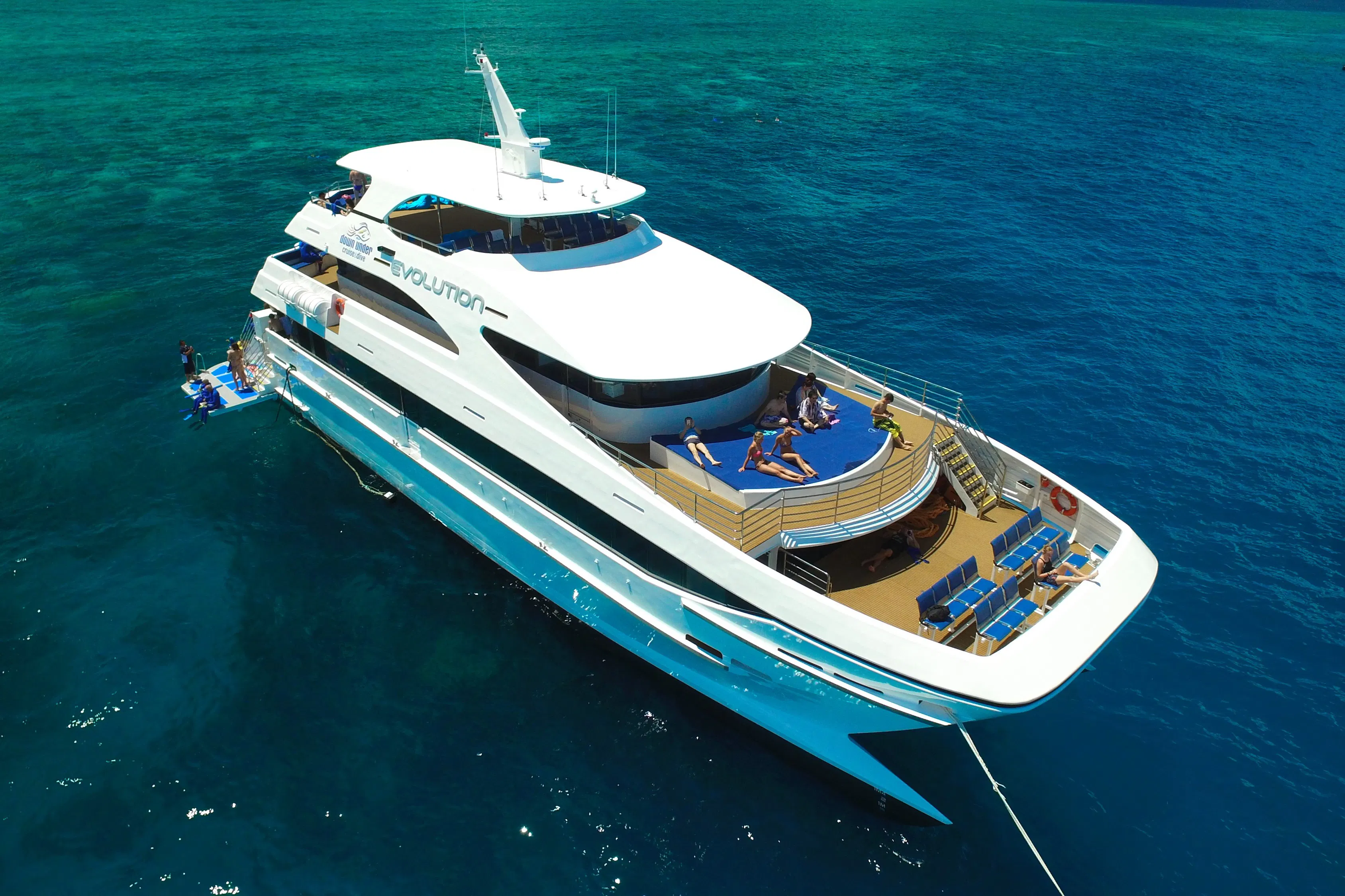 • Relax onboard a 35-metre luxury superyacht for the day, as you cruise from Cairns to two exclusive outer Great Barrier Reef sites