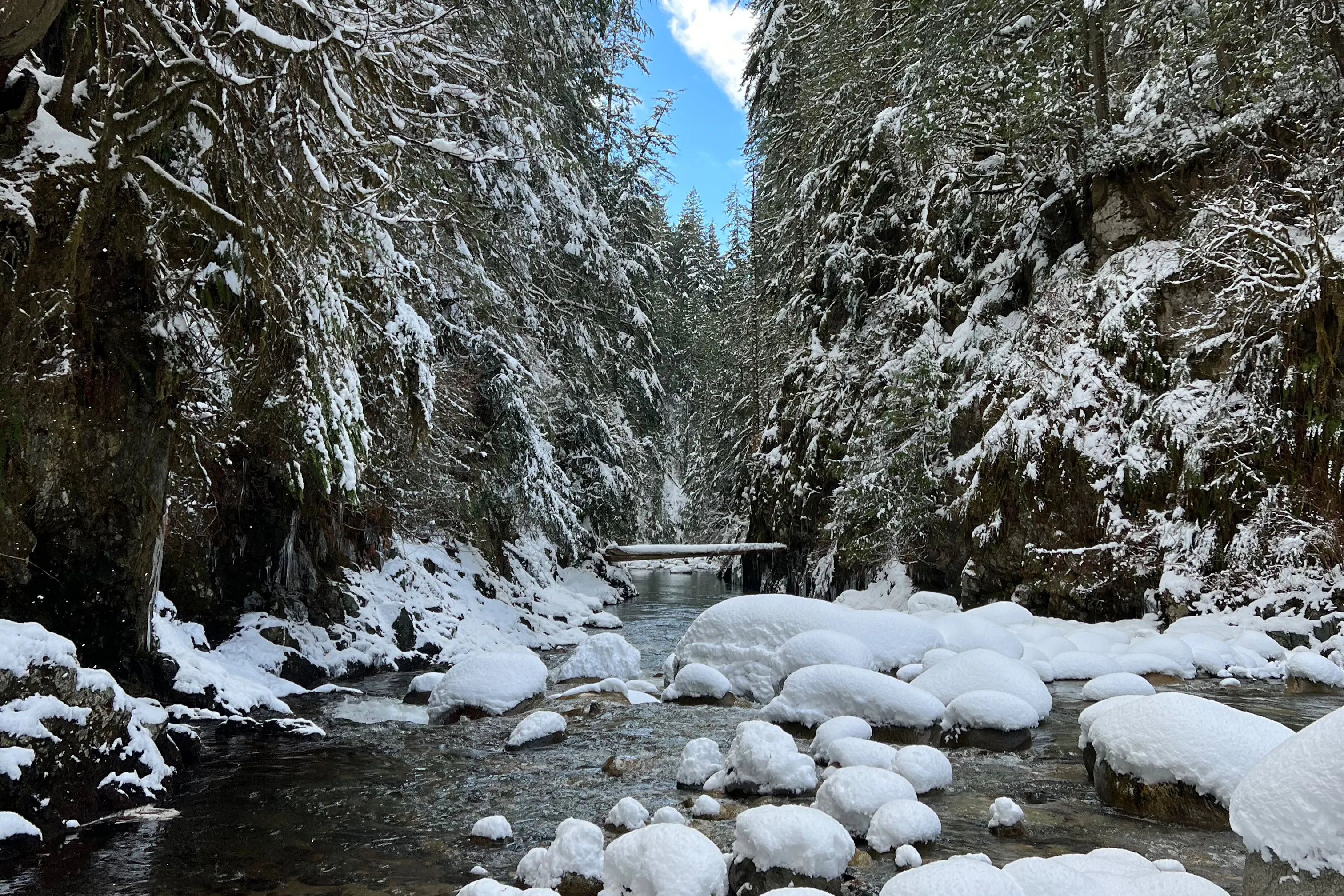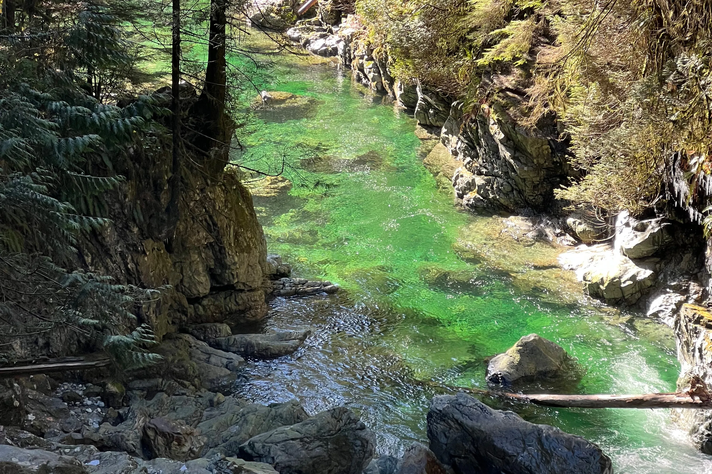 Walk through old growth rainforest and cross a suspension bridge. Explore Vancouver's natural beauty as you see old-growth rainforests, waterfalls, a suspension bridge, and clear pools.