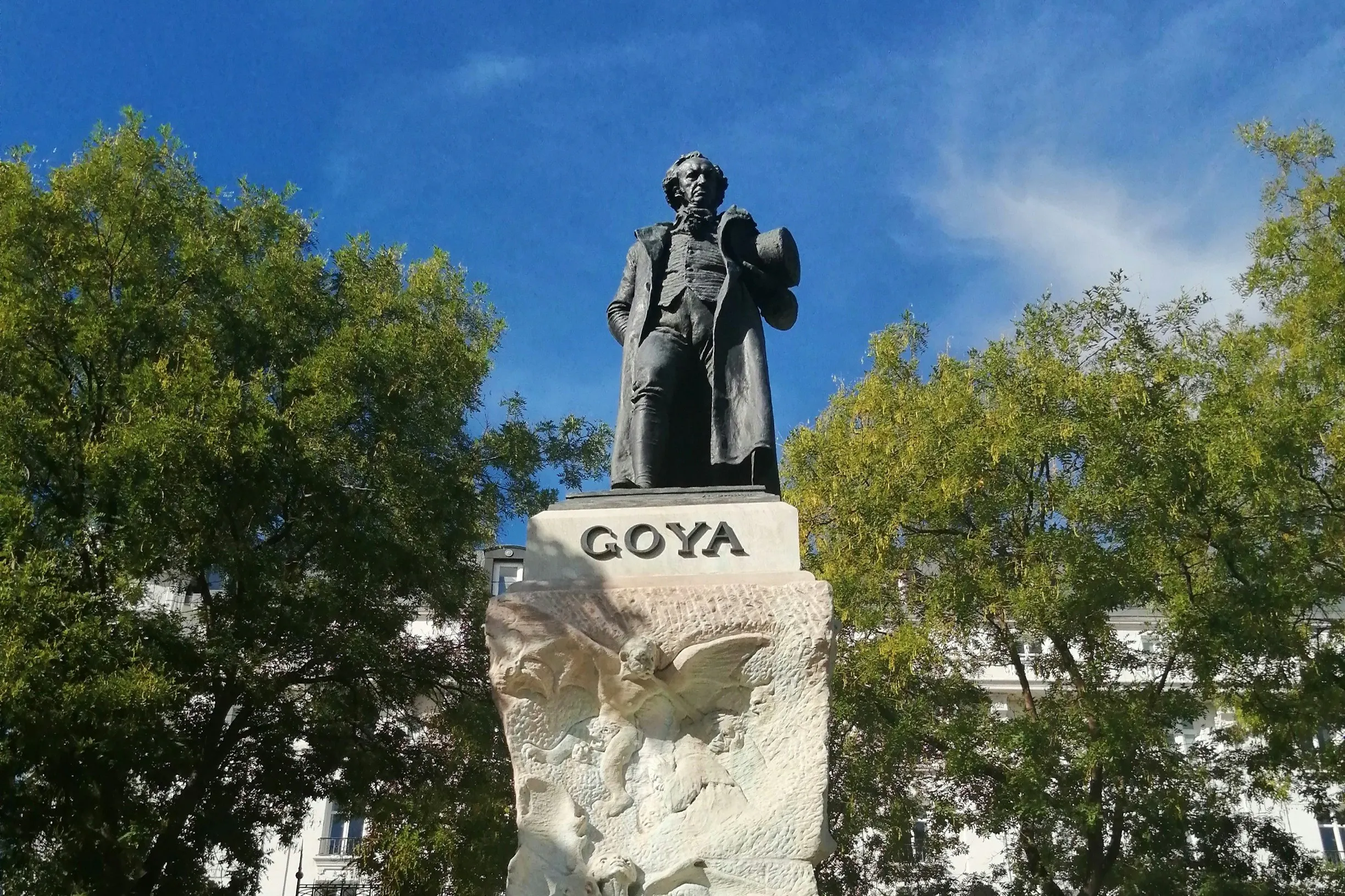 In the statue of Goya next to the Prado Museum