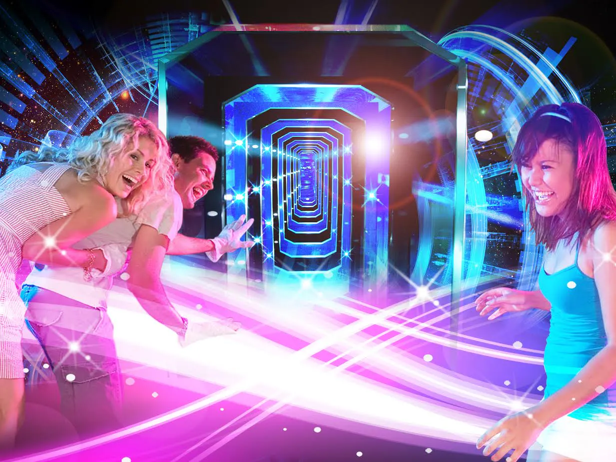 You'll be dazzled inside this futuristic funhouse filled with special effects. Step inside the funhouse of the future! Infinity Attraction is an interactive, mind-bending experience filled with illusions, special effects, and atmospheric sounds that will transport you to a world of wonder.