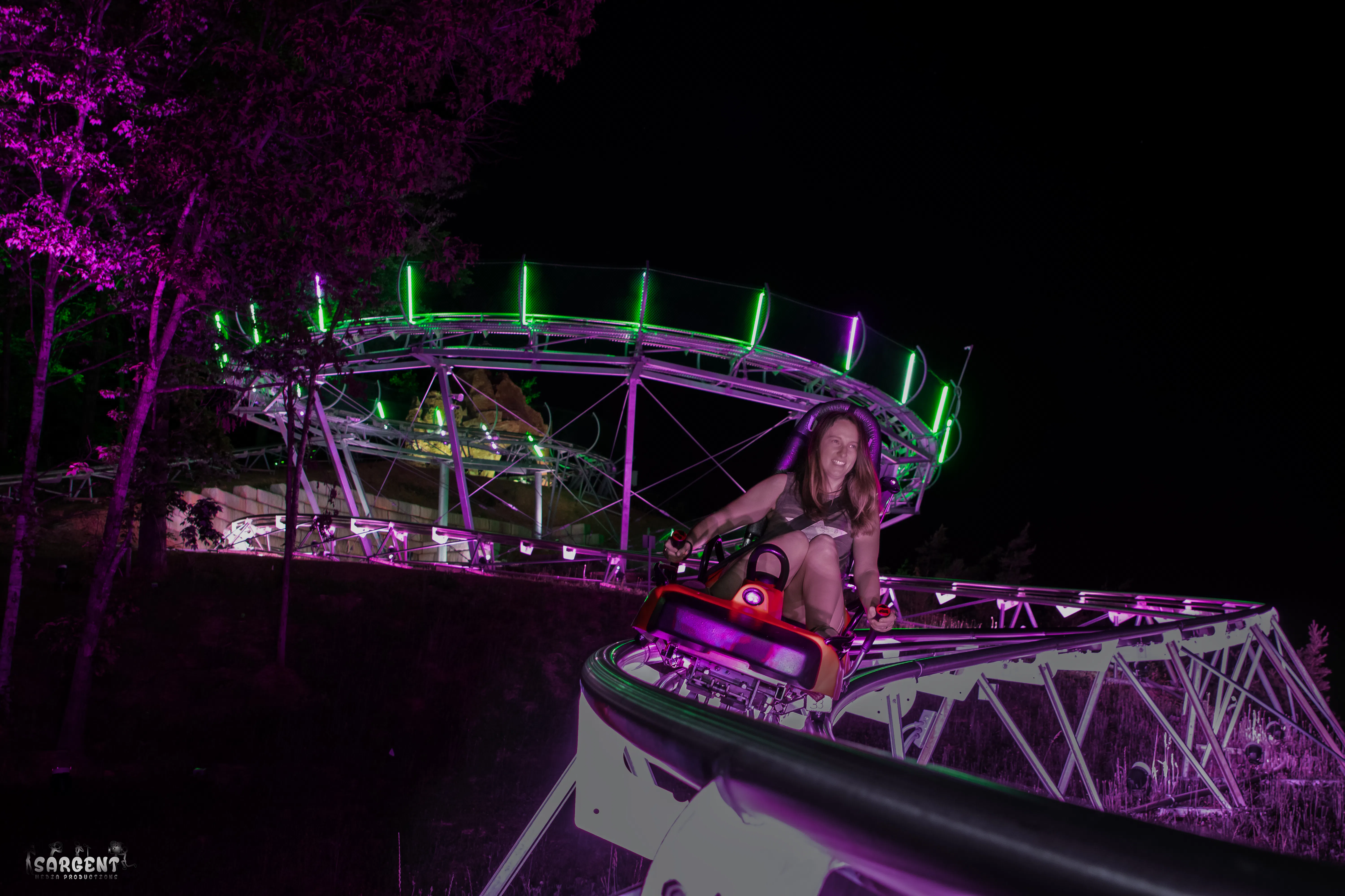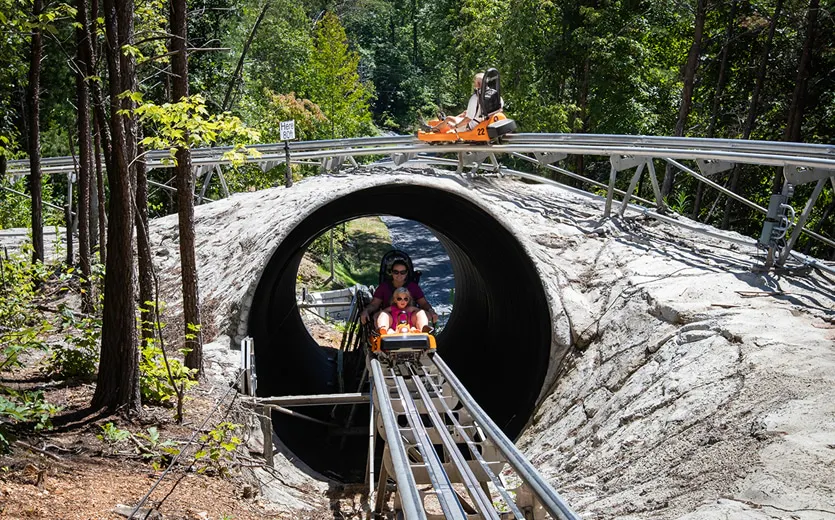 A rollicking mountain coaster in the Smoky Mountain woods. Ah, the serene Smoky Mountains of Tennessee. Wind whispers through the trees, sunlight twinkles off quiet valley creeks, and... mountain coaster carts hurtle by leaving behind an adrenaline vapor trail! Welcome to the Rocky Top Mountain Coaster – a two-person mountain...